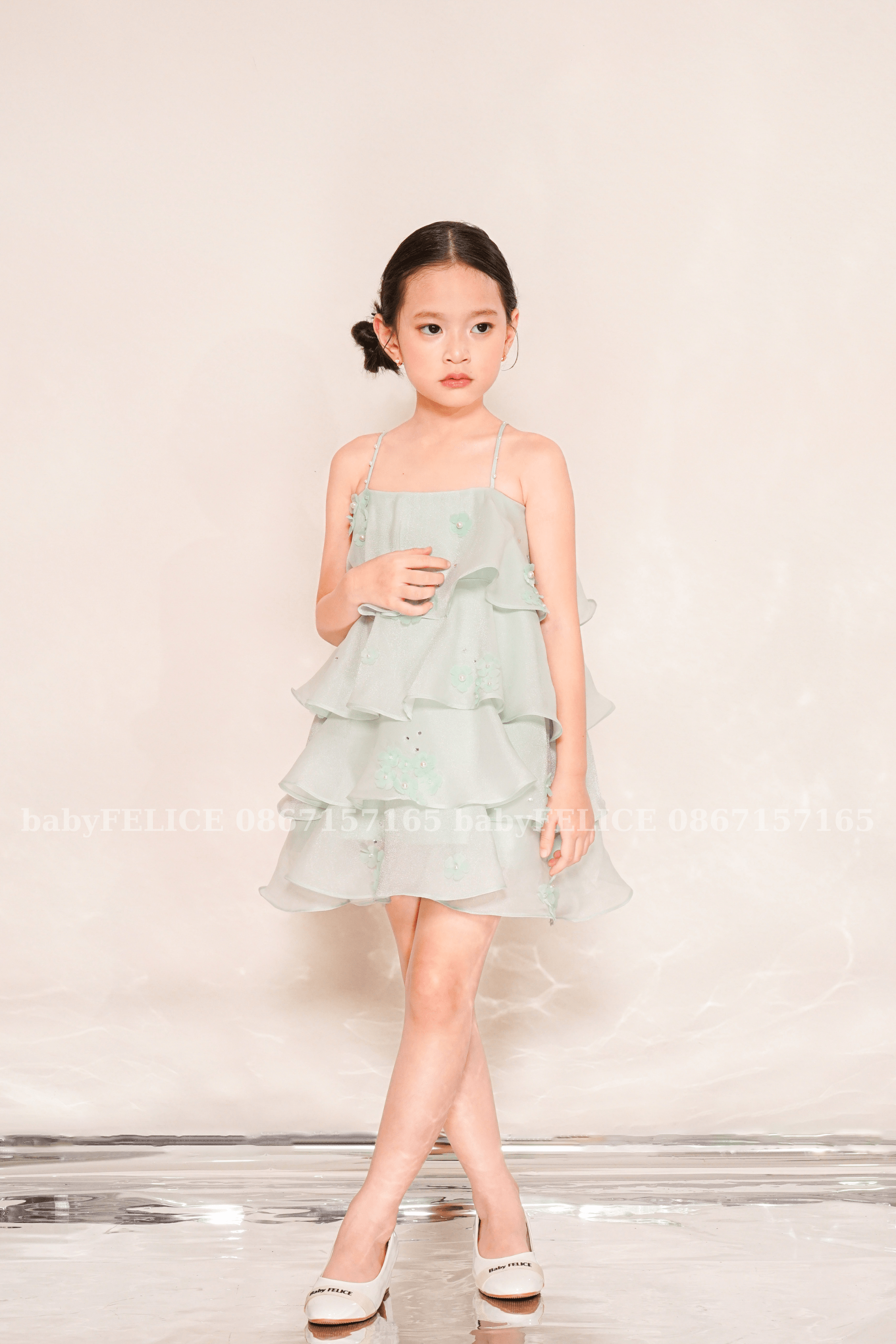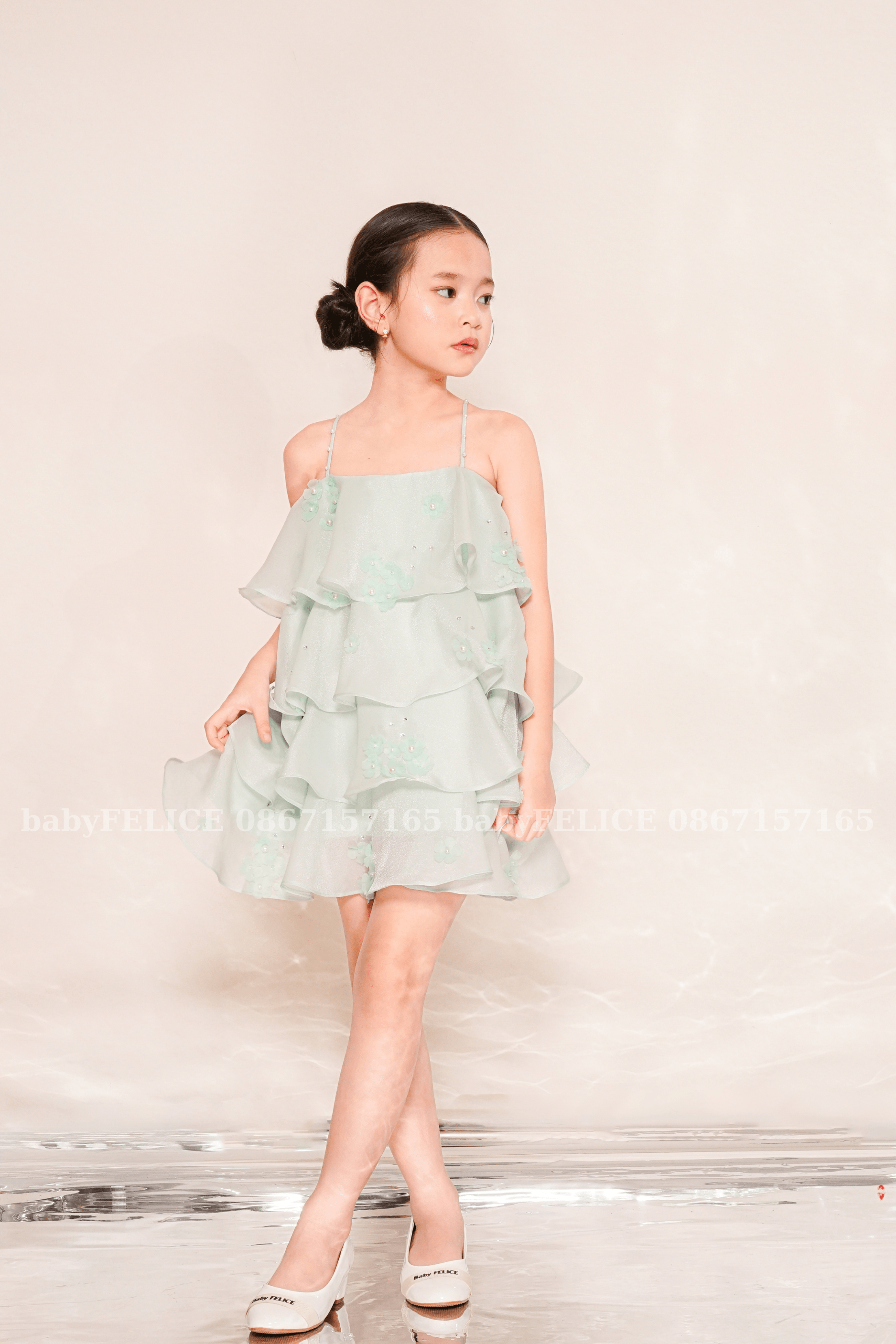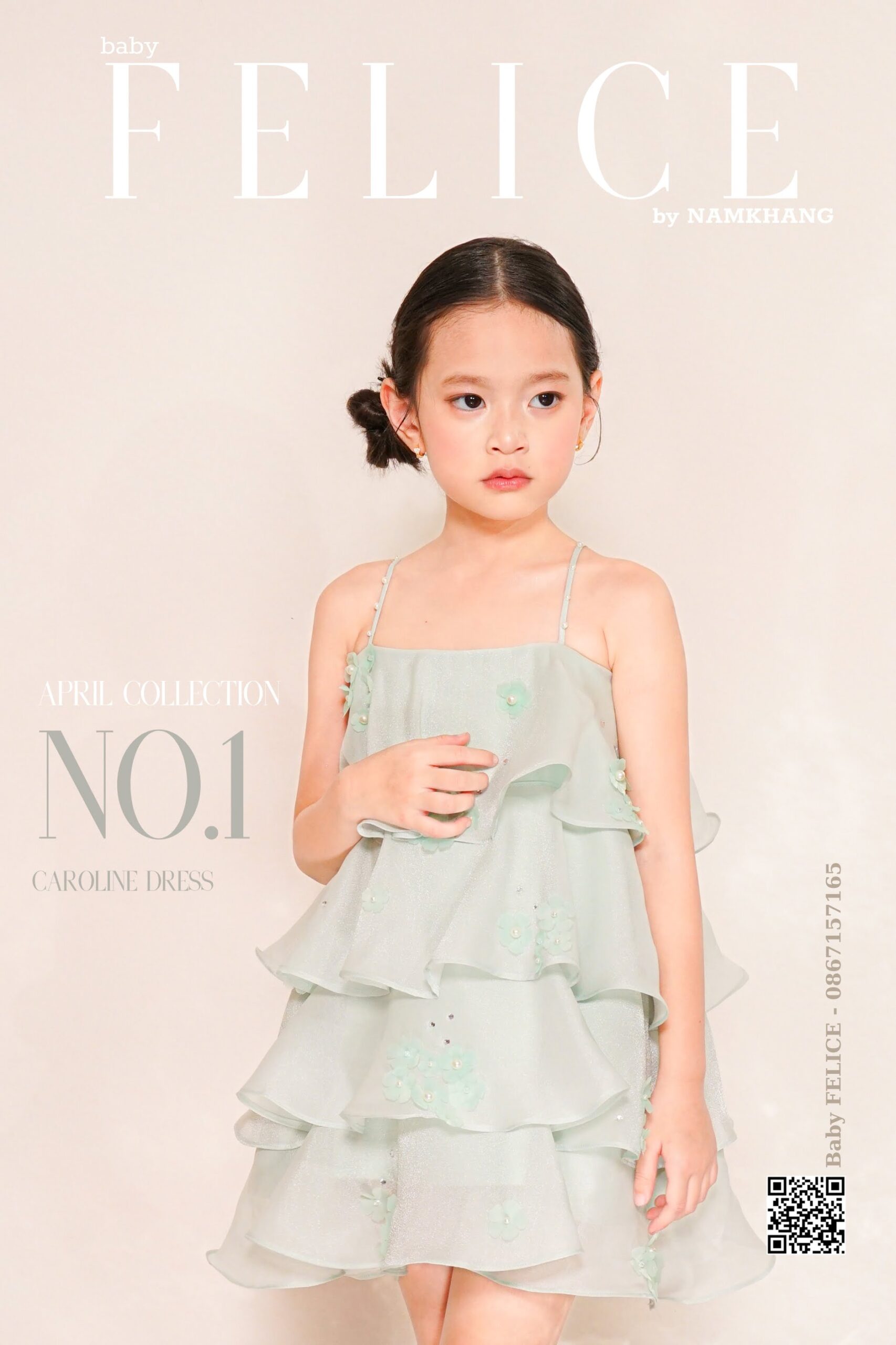 Caroline Dress xanh mint phảng phất vẻ đẹp ngọc lam thanh khiết, với các lớp bèo uốn lượn nhẹ nhàng mang đến hình ảnh một nàng thơ tinh khôi giữa nắng hè.