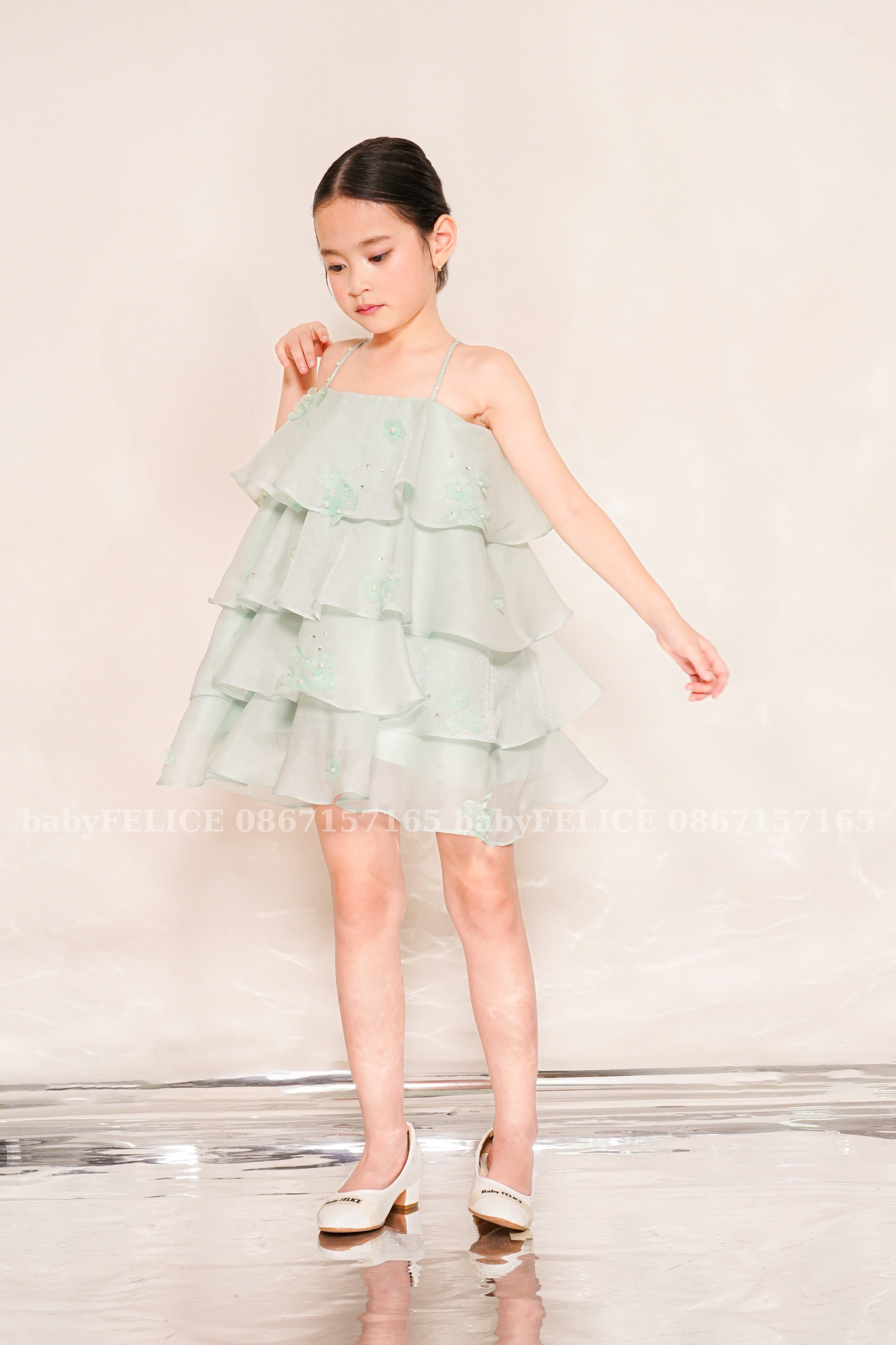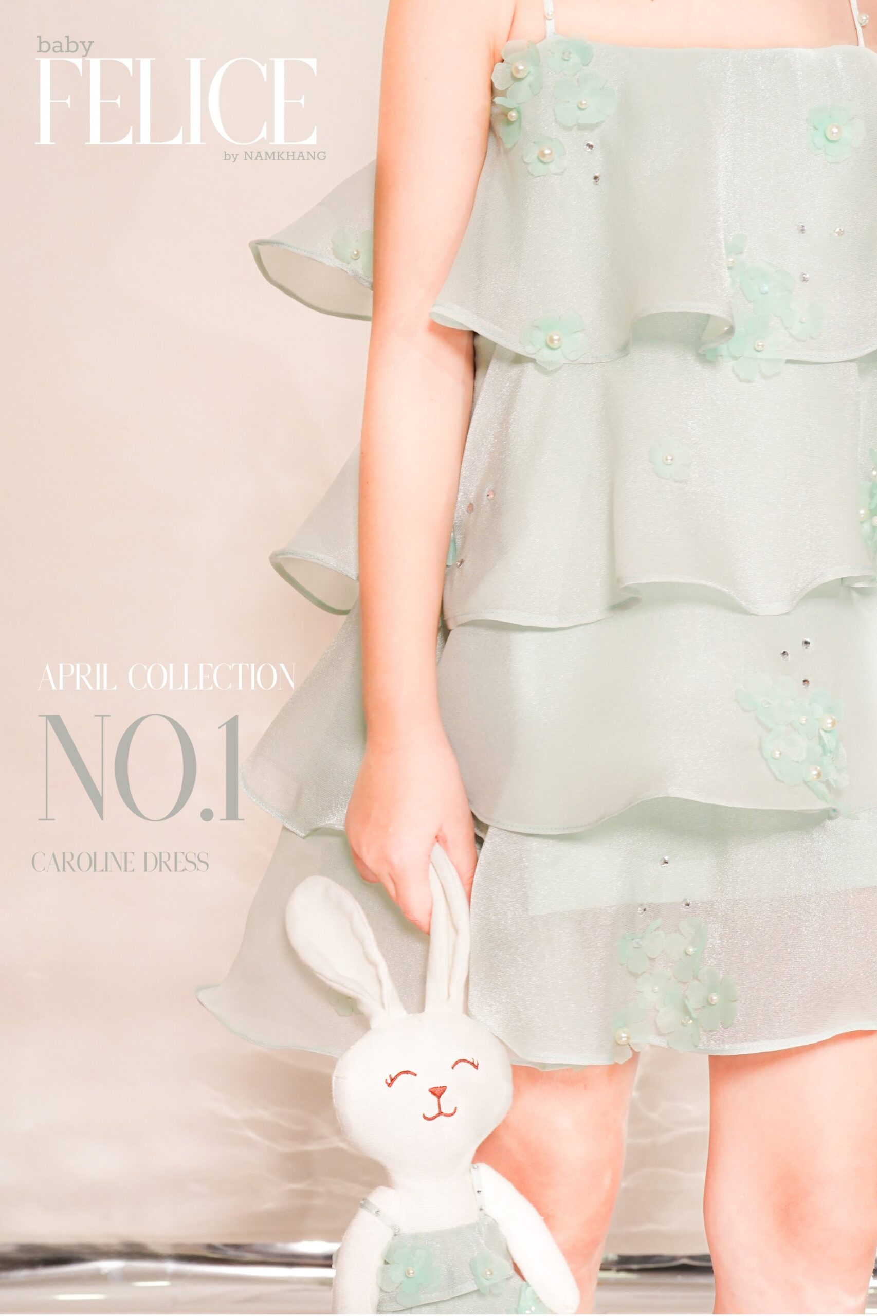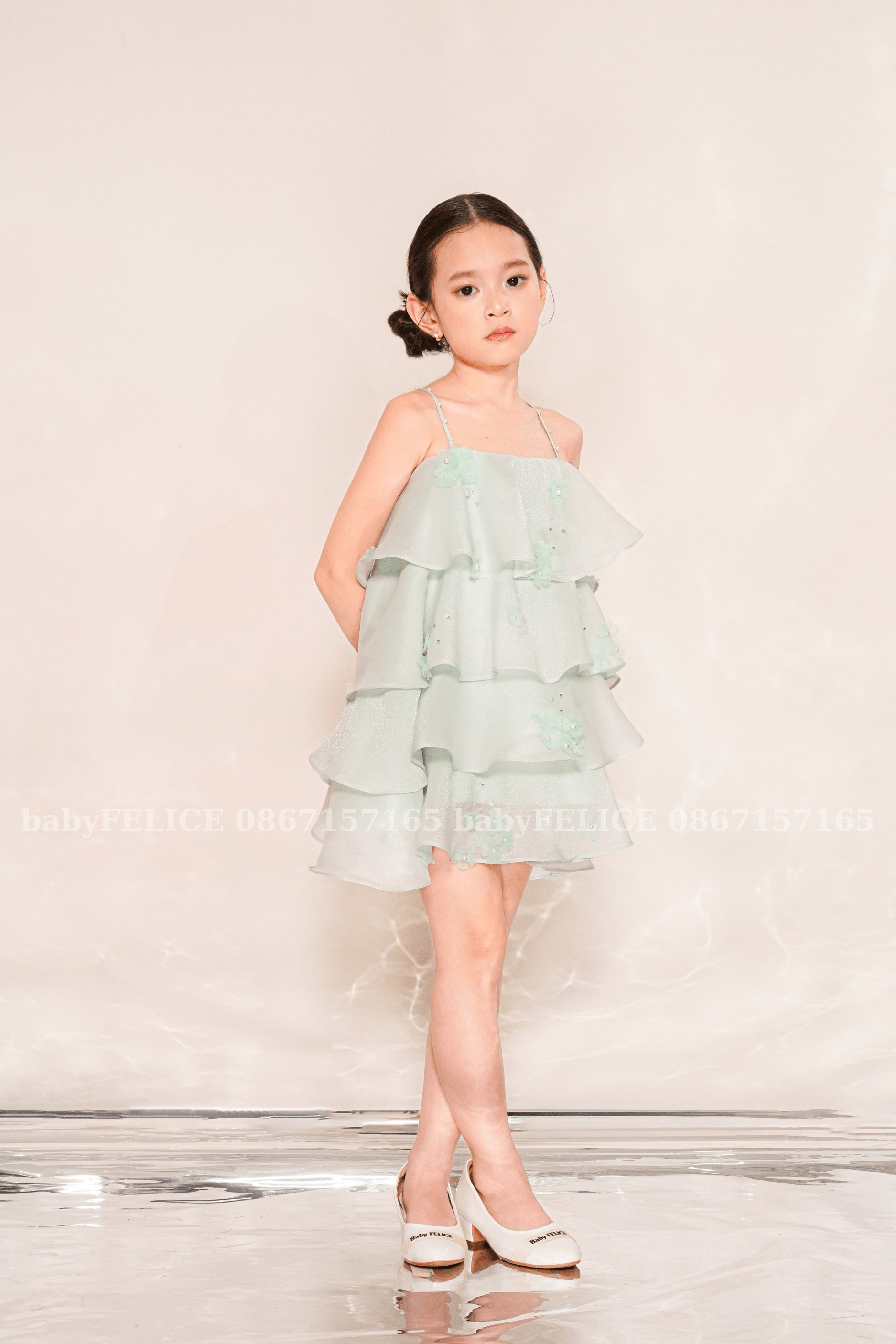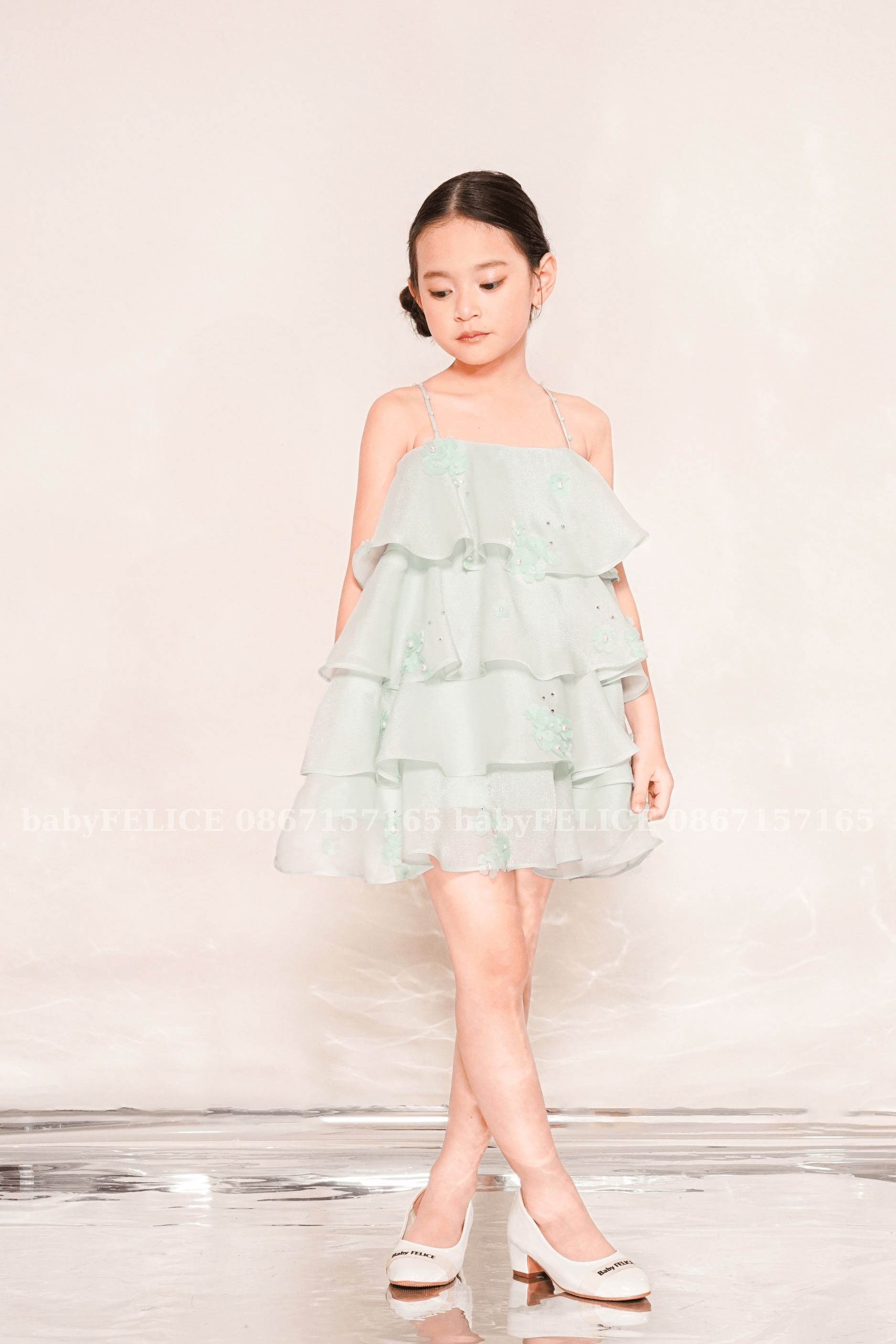 Caroline Dress xanh mint phảng phất vẻ đẹp ngọc lam thanh khiết, với các lớp bèo uốn lượn nhẹ nhàng mang đến hình ảnh một nàng thơ tinh khôi giữa nắng hè.
